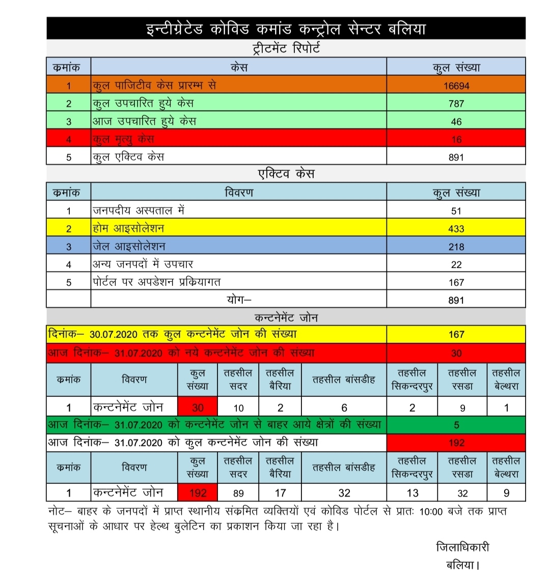 बलिया में मिले 99 पॉजिटिव केस, जाने कहाँ के है लोग कितनो की हुई अब तक मौत