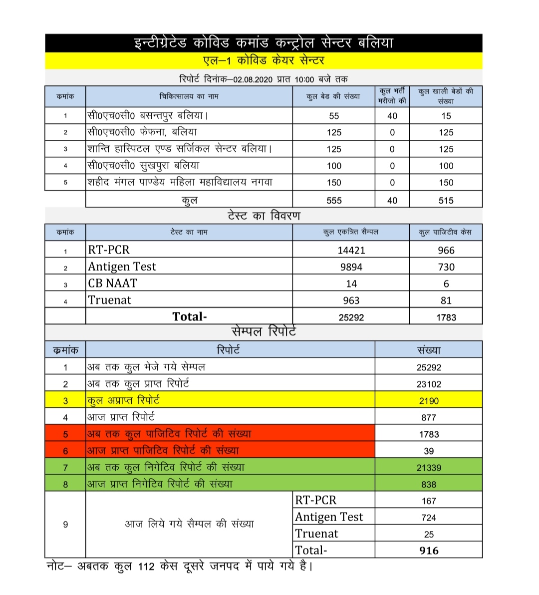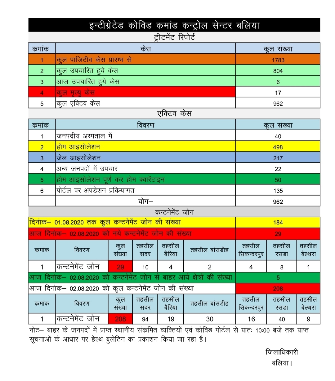 बलिया। जिले में कोरोना मरीजों की संख्या तेजी से बढ़ रही है। रविवार को यहां 39 संक्रमित केस सामने आया। इस तरह जनपद में अब तक 1783 संक्रमित मिल चुके है। वही, 17 की मौत हो चुकी है। एक्टिव केस 962 है।